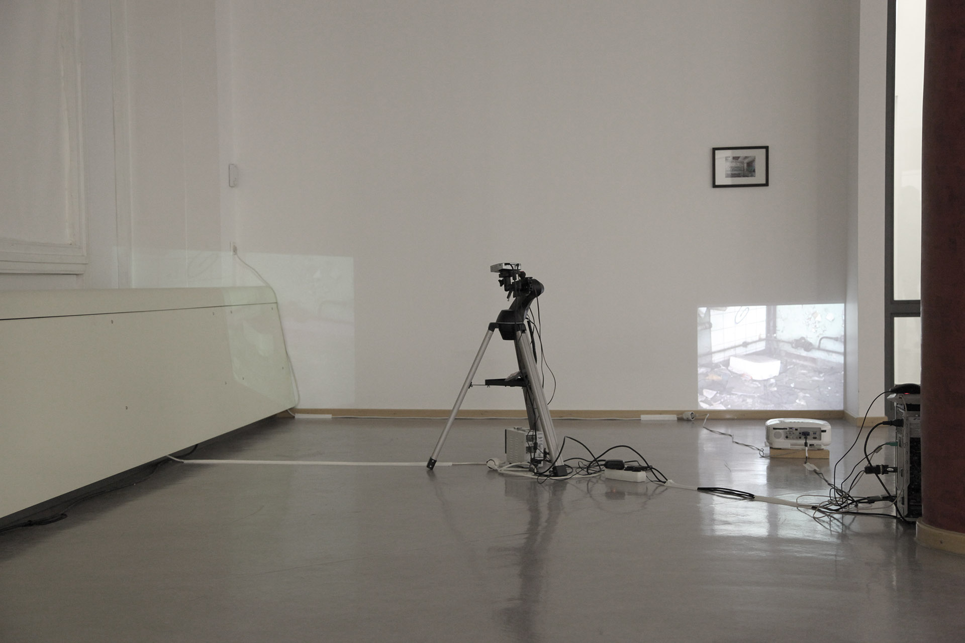 The archive of extinct spaces collects traces of architecture that no longer exists. A visual scan of the room is made before the space is demolished. A camera captures details of the walls, the ceiling and the floor. Later, within another space, a projector on a motor tripod reinacts the captured movements of the camera. The extinct space is therefore reproduced within a neutral environment, the lost room is mapped over the new architecture, where now different spaces and time overlay each other. The projector, as a simulated contemporary witness of a lost spatial situation, creates a fragmented illusion that is reassembled in the imagination of the viewer.